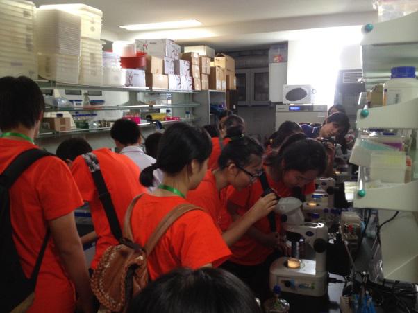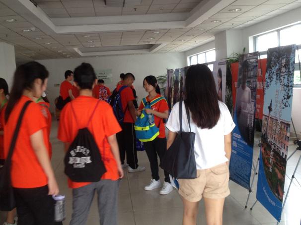 精彩的讲座之后,科学营的营员们按照不同学科分组开展进一步学科探索。在学院领导的高度重视下,在各位老师的积极配合下,学院团委精心组织、通力合作,为科学营的营员们策划了丰富的实践活动。7月17日上午9点,在志愿者的带领下,来自香港、山西及四川的近40名营员来到我院大厅,开始了生命主题活动的第一站。在陈志宏老师的带领下,营员们参观了《魅力同济 梦想生科》优秀导师和人才培养成果展,纷纷对我院雄厚的师资力量和丰硕的人才培养成果表示赞叹。随后李珊老师带领营员们参观了我院同学亲手制作的植物标本。在李老师生动的讲述下,天目山丰富的植物资源在营员们的面前逐一展开,引起了大家的强烈兴趣。第二站营员们被带到了10楼和13楼的实验室,在老师和志愿者的指导下,营员们第一次看到了众多精密的实验仪器,并有机会亲手拿起移液枪、亲眼目睹斑马鱼的世界,兴奋之情溢于言表。道交馆是此行的第后一站。17日下午营员们首先参观了道教馆的标本陈列室,随后又在志愿者的指导下意兴盎然地完成了趣味生物实验,亲手制作完成了植物标本,一个个探索生命、逐梦科学的种子也就此在心中播下。