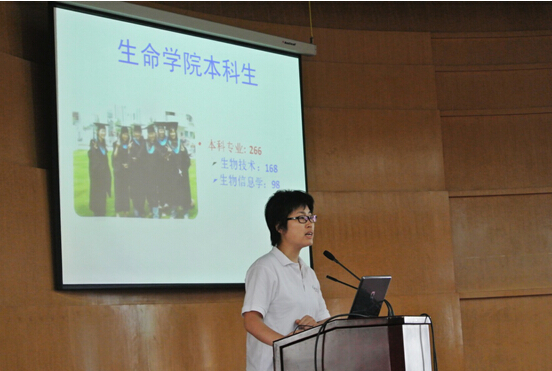 最后,康九红书记发表了讲话。康书记代表学院对2014级新生加入我院表示衷心祝贺、对新生家长的到来表示热切欢迎。近年来我院办学水平不断提升,招生规模不断扩大,已显示出了良好的社会声誉。今年5月,我院又刚刚被武大版2014年重点大学排行榜评价为五星专业。康书记请在座的各位家长们放心,学院将矢志不渝地贯彻培养专业精英和社会栋梁的育人理念。随后,从宏观的国家发展战略入手,康书记以“21世纪的生命科学与人类健康”为题,高屋建瓴地阐述了生命科学的巨大发展前景,展示了生命科学所蕴含的巨大就业潜能和发展活力。中国梦深深根植于健康梦,面对生命科学发展的历史机遇,康书记鼓励同学们坚定信心,勇敢探索和感受生命科学的魅力,开启属于自己的精彩大学生活。
