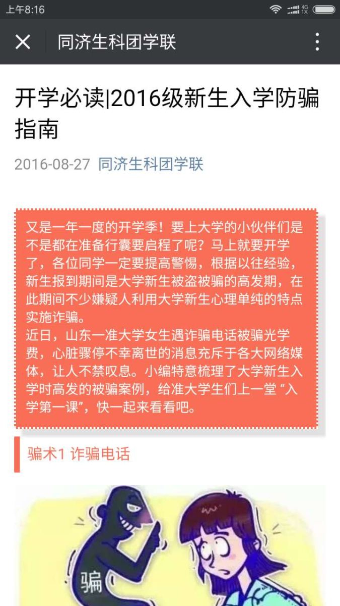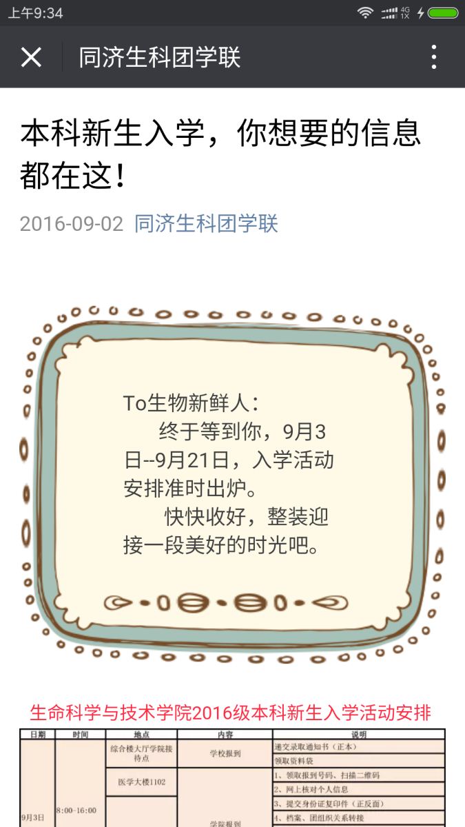 在忙碌的报到现场之外,在线上一样能够感受到生科大家庭的温暖。不论是同济生科团学联微信精心策划的迎新系列板块《本科新生入学,你想要的信息都在这》、《开学必读——2016级新生入学防骗指南》、《致新生——靠谱学长说合集》……,还是驻扎在新生群里,随时在线解答各类咨询的老师们,每位生科人都用实际行动关怀着新生,与新生共携手。