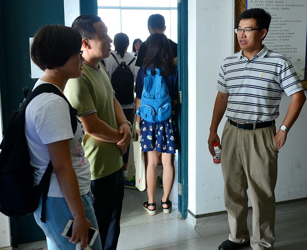 报到现场老师和志愿者们各司其职 迎新工作有条不紊