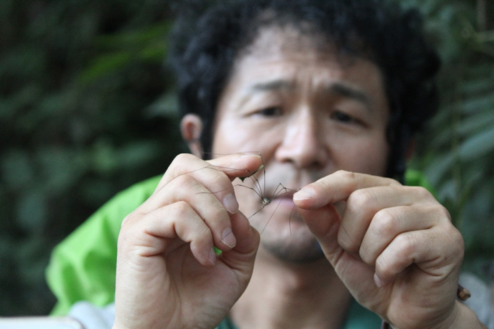本次野外综合实习,由郭光普老师负责指导同学们进行昆虫学的实习内容。“孩子王”郭光普老师带领大家深入丛林,进行昆虫标本地采集。郭老师妙趣横生地为大家讲解了各类昆虫的形态、习性等知识,极大地点燃了同学们的学习热情。同学们很快克服了心理恐惧,与昆虫进行了亲密接触。此外在讲解过程中,郭老师还通过各种自然现象激发了同学们对环境保护和人生的思考。