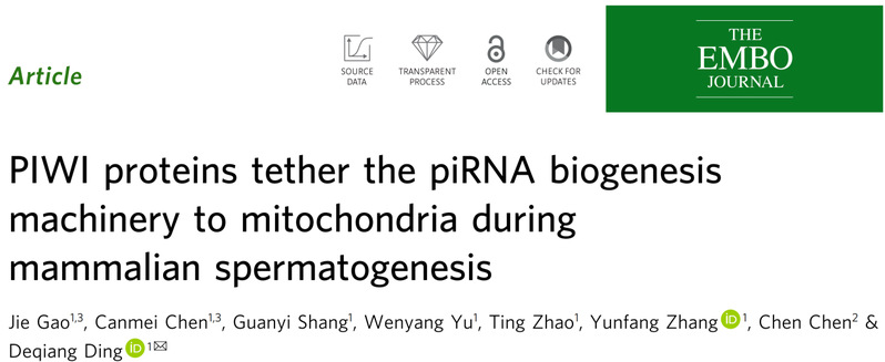 3.Gao, J., Jing, J., Shang, G., Chen, C., Duan, M., Yu, W., Wang, K., Luo, J., Song, M., Chen, K. et al. (2024) TDRD1 phase separation drives intermitochondrial cement assembly to promote piRNA biogenesis and fertility. Dev Cell, 59, 2704-2718 e2706.
