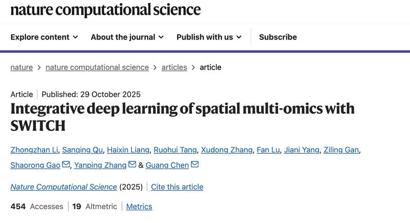 Li, Z., Qu, S., Liang, H. et al. Integrative deep learning of spatial multi-omics with SWITCH. Nat Comput Sci (2025). https://doi.org/10.1038/s43588-025-00891-w