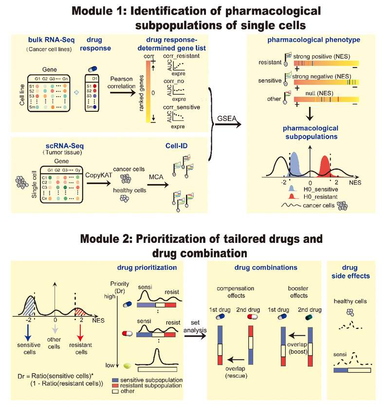 肿瘤并非由完全相同的细胞组成,其内部存在高度的异质性。这种差异导致同一肿瘤内不同细胞对同一药物的反应千差万别,是靶向治疗和化疗产生耐药、最终导致治疗失败的主要原因。单细胞RNA测序技术能揭示这种细胞间的分子差异,但如何将传统的、基于细胞群体的药效数据与单细胞图谱精准对接,从而在治疗前预测哪些细胞会响应、哪些会抵抗,是当前计算生物学和精准医疗面临的重大挑战。现有方法多依赖复杂的机器学习模型,在可解释性、计算效率和直接指导临床联合用药方面存在局限。